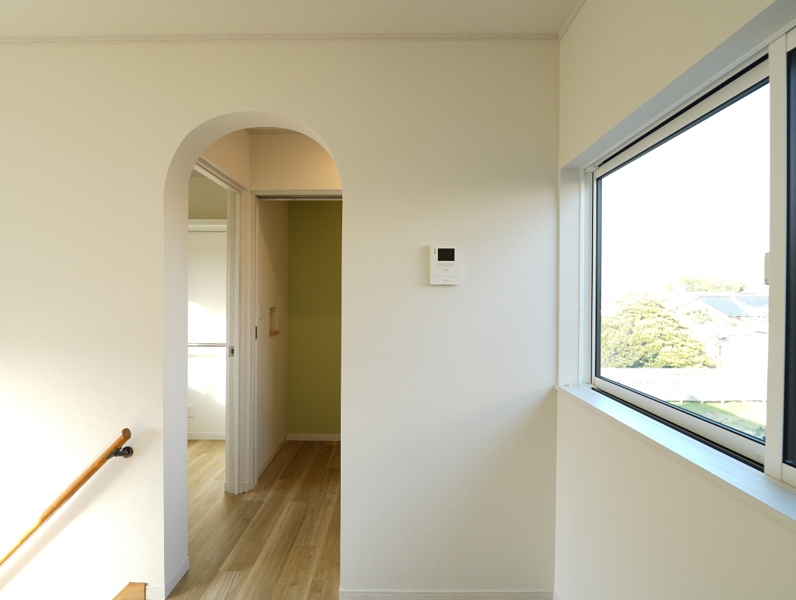 2Fも収納スペースが多く、ホールは後から追加の収納棚を置くこともできる余裕のある空間に。