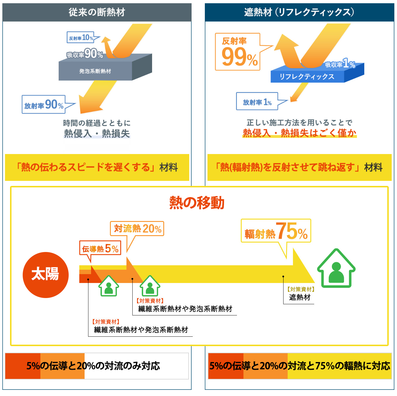 リフレクト工法とは、従来の断熱材や遮熱塗装では防ぎきれなかった