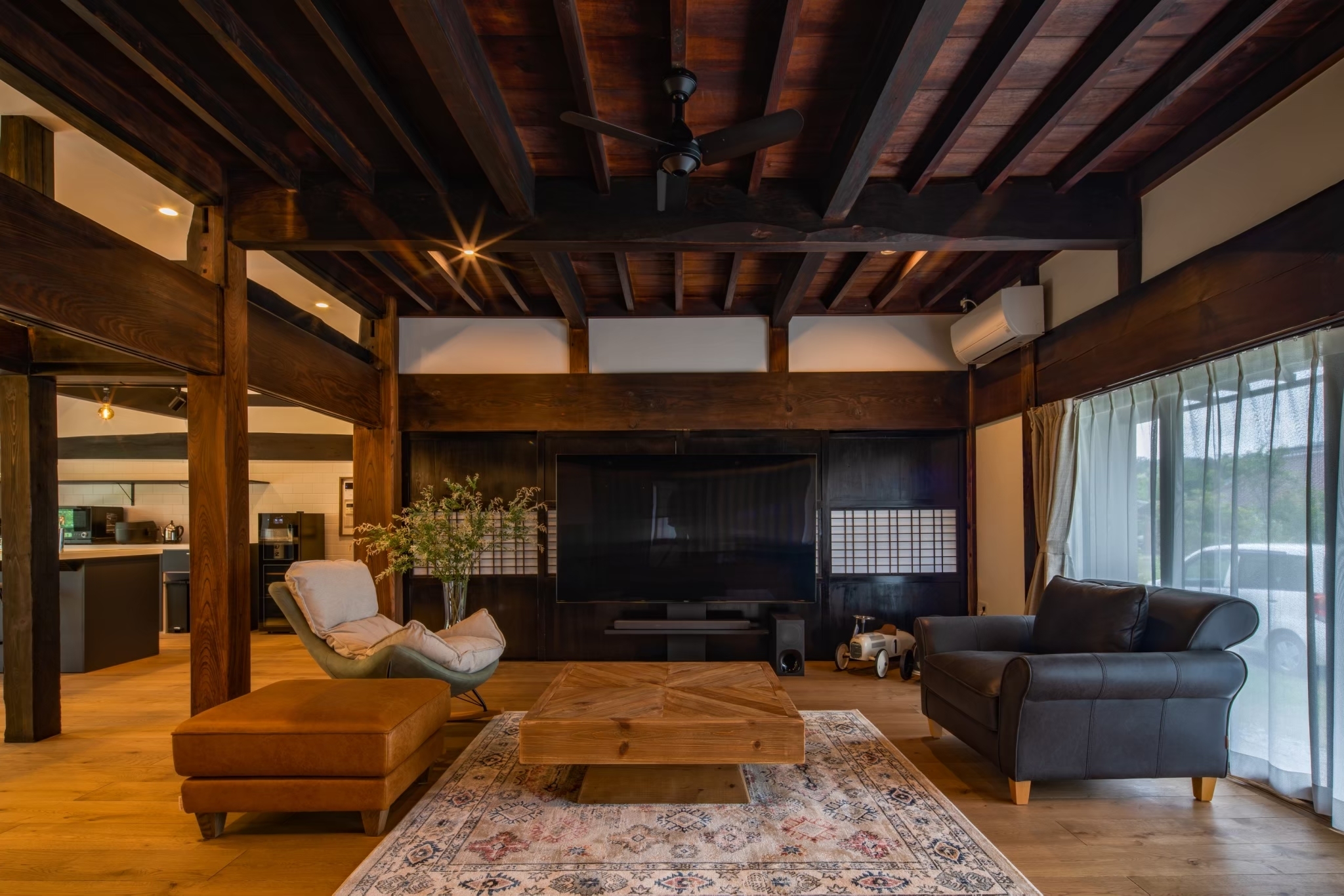 築年数80年以上と言われる古き良き建物を現代に住み易く内外装リノベーションしました。 構造や開口高さ等の制限も、施主と気持ちを通わせて解決。 建立当時の意思をくみ取り、社畜建築の技術を生かした、更に次世代へと受け紡がれる価値ある住まいをご提供させていただきました。 使える木材を積極邸に残した、物語が浮かぶ空間に癒されます。